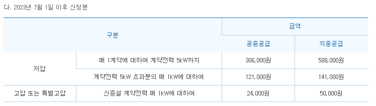 지중공급 지역 (7kW) – 588,000원 + 141,000원 * 2kW = 870,000원 (vat 별도)